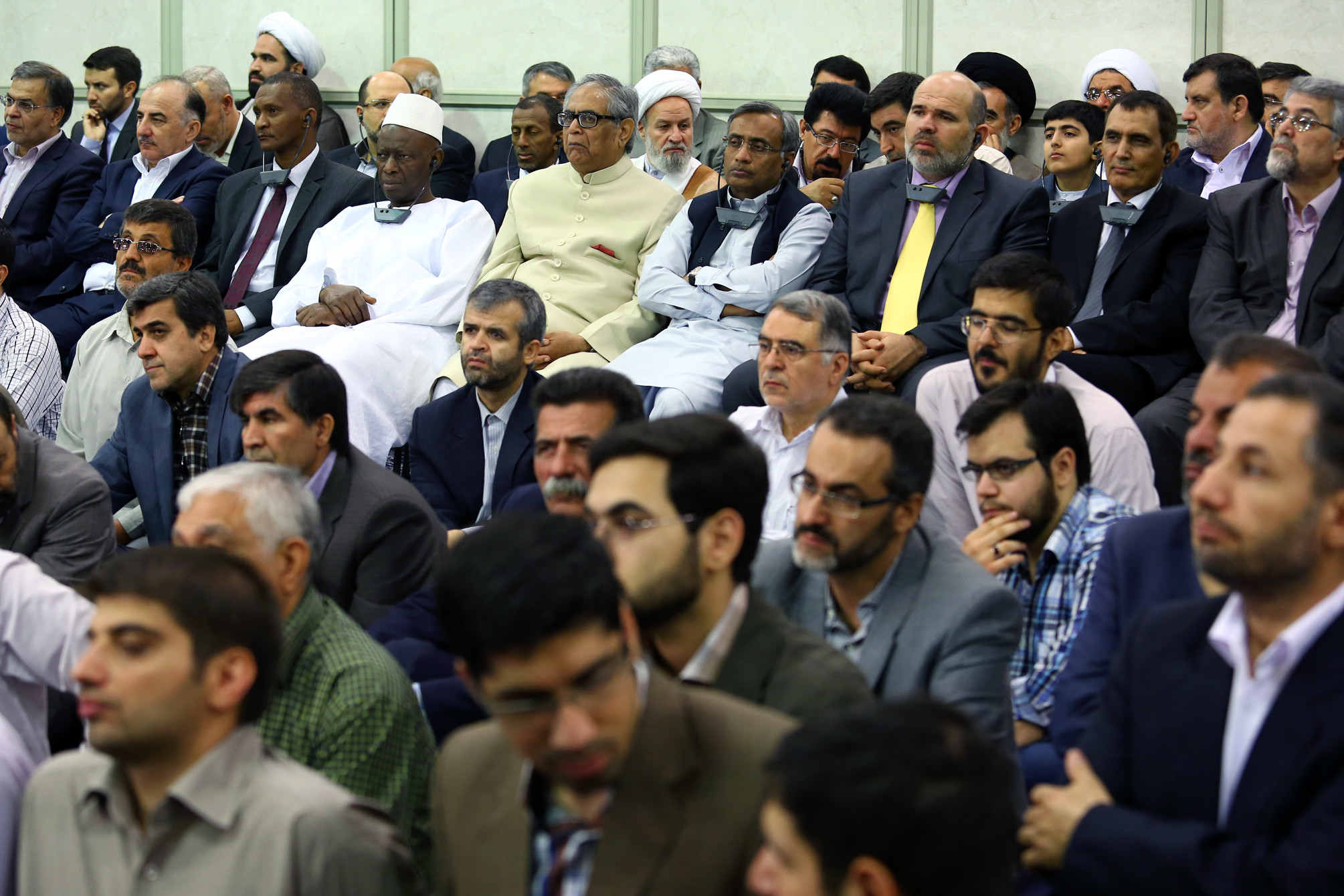 زمین تا آسمان فرق دارد این جمع با جمع دانشجویی. آن شور و هیجانی که یکبار در دیدار دانشجویان (رمضان90) با ره بر دیدم به هیچ وجه در رفتار این جمع اتوکشیده دیده نمی شود. تک و توک جوان هایی مثل من درگوشی چیزهایی می گویند و می خندند. میهمانان از مسئولان، سفرای کشورهای اسلامی و اقشار مختلف مردم هستند. سفرا به رسم احترام در عقب مجلس بر روی صندلی نشسته اند.